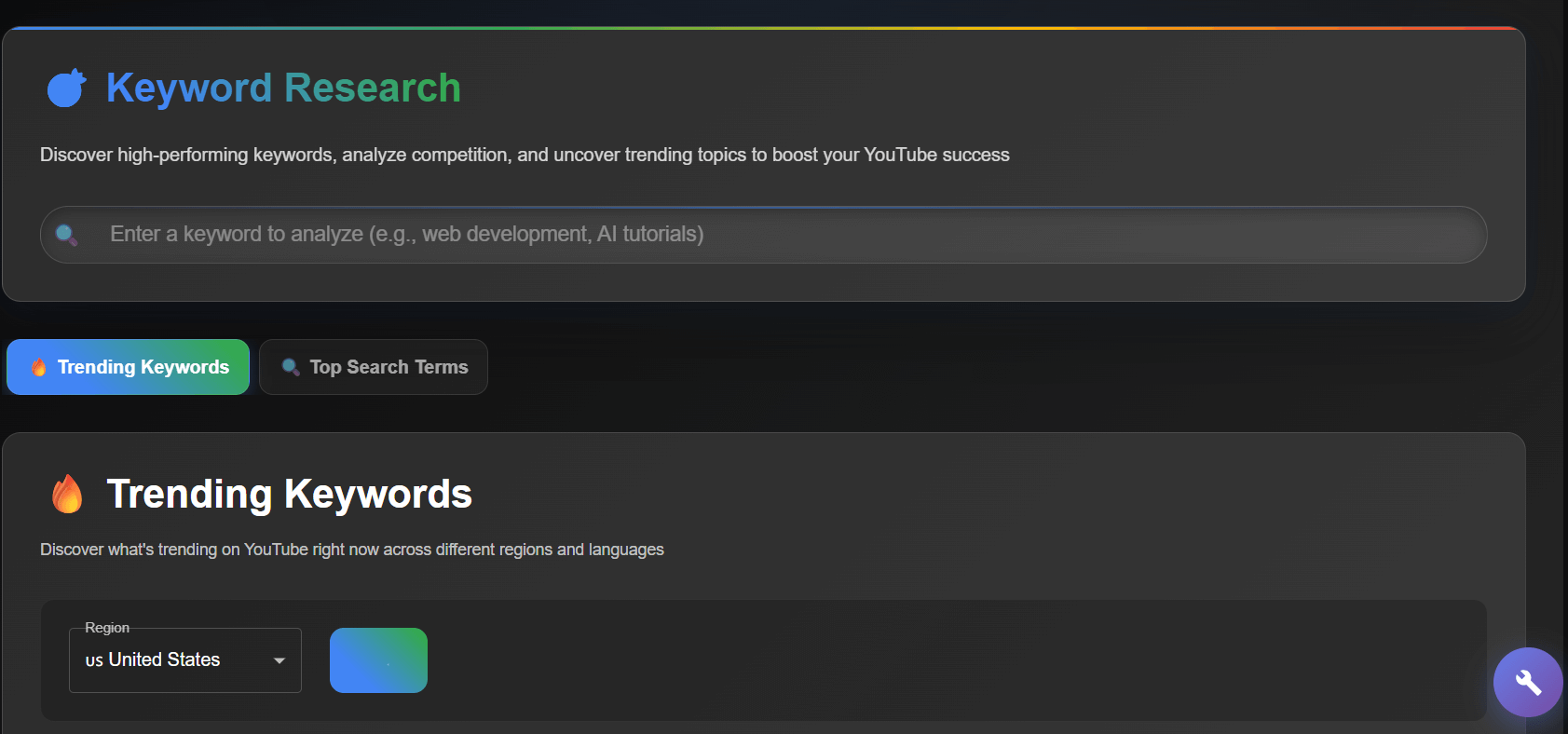 Keywords: Provides trending, SEO-optimized keywords with performance scores and regional filters to maximize discoverability.