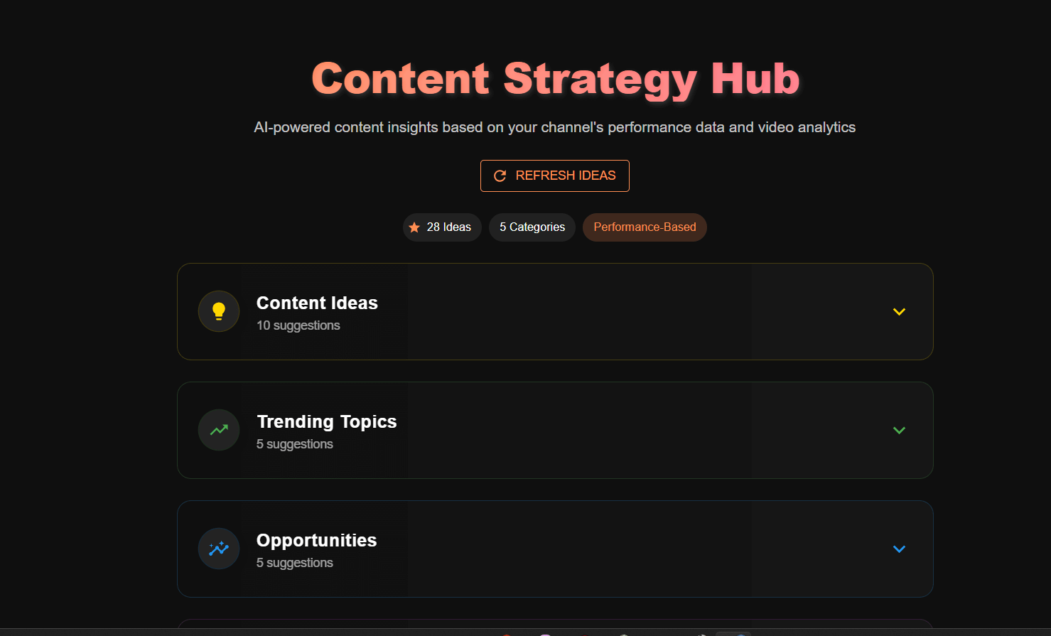 Video Ideas: Suggests relevant and trending topics by analyzing audience interests and YouTube comments.
