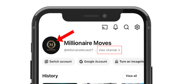 - Tap on your profile picture, then tap on Your Channel.